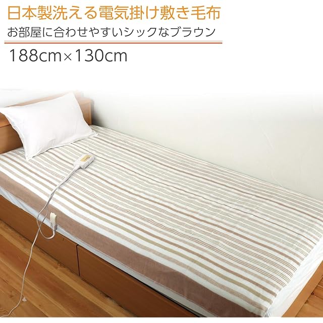 商品名:ライフジョイ 電気毛布 日本製 掛け 敷き 兼用 シングル ブラウン 188cm×130cm 洗える 省エネ リバーシブル JBK551B