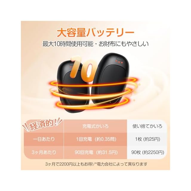 【分離式デザイン式・ペアでワンセット】分離式な 充電式カイロ は実現した!一つは手を暖めながら、もう一つは他のデバイスを充電することもできる。また、外出時に左右の手を別々に暖められるほか、片方だけ持ち歩いて荷物がかさばっても握りやすい。寒い冬に手足を温めてくれ、暖かさをもたらします。長時間お待たせなく、いつでもどこでも優しい温もりを与えてくれます。冷え性の方や寒さに弱い方が冬を快適に過ごすために最適な防寒グッズです。