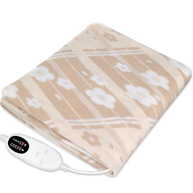 電気毛布 敷き 掛け兼用 【4段階タイマー 55W 節電 140×80cm 5段階温度調整】切り忘れ防止タイマー付き 速暖 省エネ 洗濯可能 電気毛布洗える 電気ブランケット 頭寒足熱 ダニ退治 防寒対策 肩掛け 膝掛け シングル 毛玉なし 暖房器具 キャンプ オフィス 車中泊 ギフト ( 花柄)