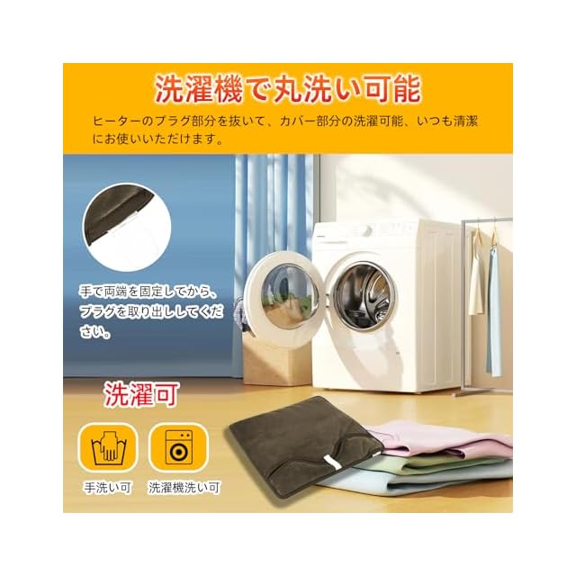 【お肌に優しい生地・優れた保温性・洗濯可能】この電気足温器は暖かくて、超柔らかな肌触りが魅力の「マイクロプラッシュ(Microplush)」を採用します。「マイクロプラッシュ(Microplush)」は、柔らかいビロードのような繊維が特徴です、 繊維の中に空気を含んで熱を逃さないので、フリースよりも保温性に優れています。手洗いだけでなく、洗濯機で丸洗いできます。洗える前に、ヒーターのプラグ部分を抜いて、カバー部分の洗濯可能です。(コントローラーをや電源コードの洗浄はできません。)