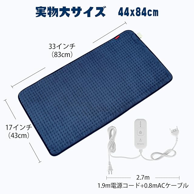 商品名:Comfytemp 瞬暖電気ホットマット 一人用 3段階温度調整 タイマー機能付き ホットカーペット ミニ ホットマット 充電式 加熱パッド 電気マット 一人用 省エネ 防寒対策 洗濯可能 過熱防止 腹/背中/肩/在宅勤務対応 日本語説明書付き 43X84cm