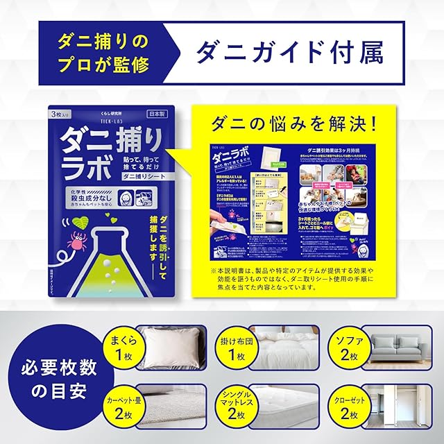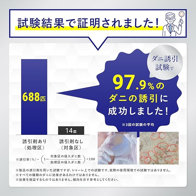 ✅ダニの誘引試験では97.9%のダニの誘引に成功。ダニシートから放たれるDNTECH-αがダニを誘き寄せます。国内ダニトリシートトップレベルの誘引力です。匂いは設置しても気にならない匂いで、日々の生活もストレスフリーで過ごすことが可能です。