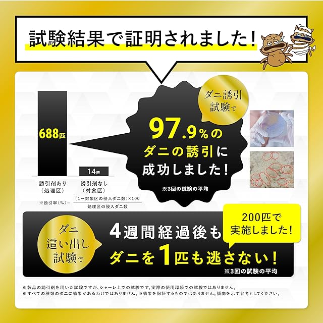 ✅ダニの誘引試験では97.9%のダニの誘引に成功。ダニシートから放たれるDNTECH-αがダニを誘き寄せます。国内ダニトリシートトップレベルの誘引力です。匂いは設置しても気にならない匂いで、日々の生活もストレスフリーで過ごすことが可能です。