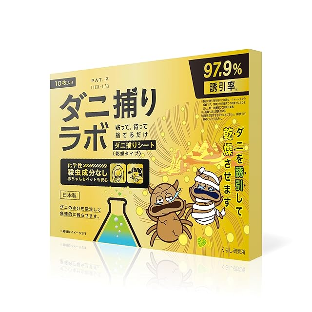 ✅従来にはなかった乾燥タイプのダニ捕りシートが新登場!20年以上の歴史がある衛生管理製品開発メーカー開発。独自開発のDNTECH-αと特許出願中のnano-DRY-Dを最大量配合させることで、ダニ捕りシートにダニを大量に誘きよせて一網打尽に。置くだけの乾燥タイプが、水分を多く持つダニに対してより効果的に働きます。化学性殺虫成分を一切利用していないので、子供やペットにも安心安全です。 ✅ダニの誘引試験では97.9%のダニの誘引に成功。ダニシートから放たれるDNTECH-αがダニを誘き寄せます。国内ダニトリシートトップレベルの誘引力です。匂いは設置しても気にならない匂いで、日々の生活もストレスフリーで過ごすことが可能です。 ✅独自成分のnano-DRY-Dが、ダニを二日で即乾燥。これまでのダニ捕りシートはダニを捕えてもダニが活動し続けることで排泄物や卵を産み、それらが外に出てしまったことも。しかし、乾燥タイプのダニ捕りラボは、80%以上が水分で含まれているダニを乾燥させることで2日で急速に弱体化させます。 ✅厚さわずか3.00mmの極薄設計。ポンっと置くだけでダニへの効果は3ヶ月持続。たった5秒もあれば、ベッドや押入れ、ソファなどあらゆる場所でダニ対策が可能です。