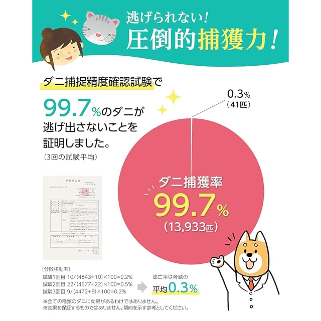✅ 【特許構造でダニ捕獲率 脅威の99.7%◎】創業50年以上の老舗企業と共同開発した特許構造の力で捕獲率は脅威の99.7%!カイカイやムズムズを引き起こすダニも一度入ったら逃げ出せません!