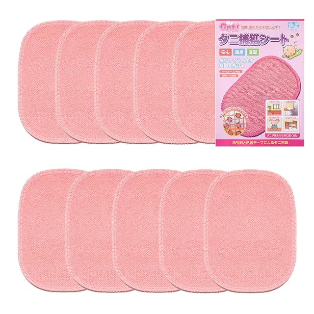 漁生堂 ダニ捕獲シート(10枚入)防虫・防ダニシート 寝具 布団 ダニ取りシート 、日付シール付き 殺虫剤不使用、置くだけ簡単 ピンク