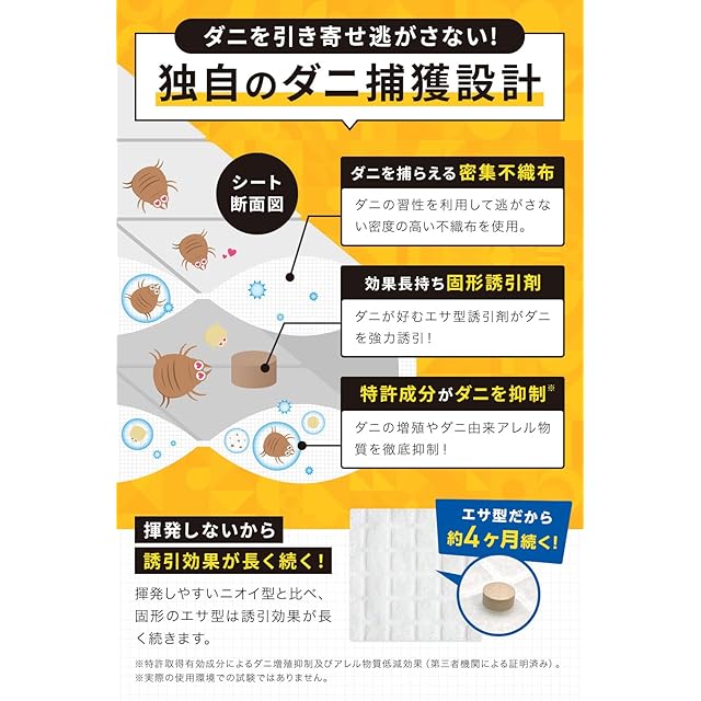 商品名:ダニ取りシート 4ヶ月持続 3枚入【誘引×増殖抑制99% アレル物質低減99%】赤ちゃんにも ダニ駆除 酵母