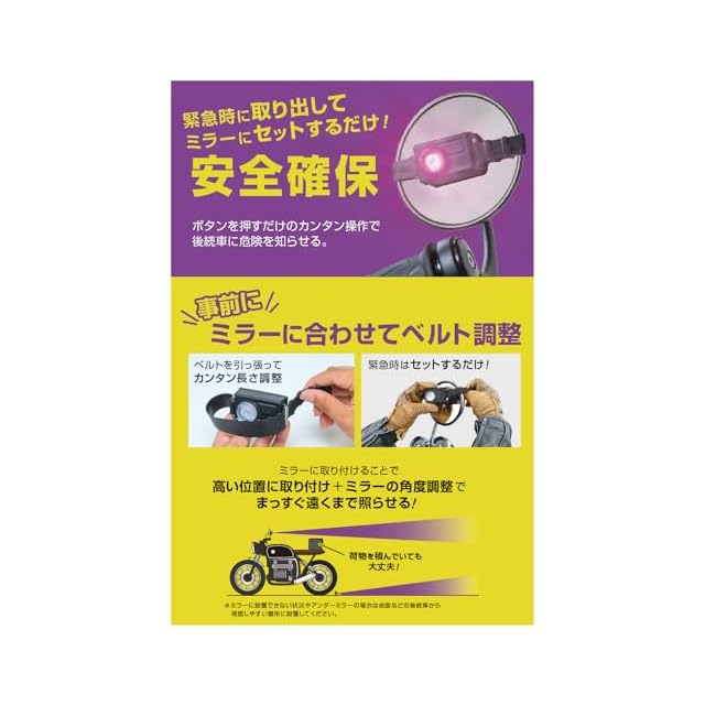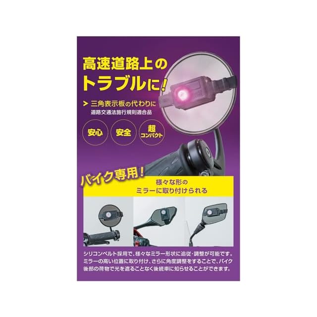 商品名:【バイク用】エーモン(amon) パープルセーバー モト バイク用 ブラック 三角表示板の代わりに 薄型設計 コンパクト シリコンベルトでミラーに設置 道路交通法施行規則適合品 4840