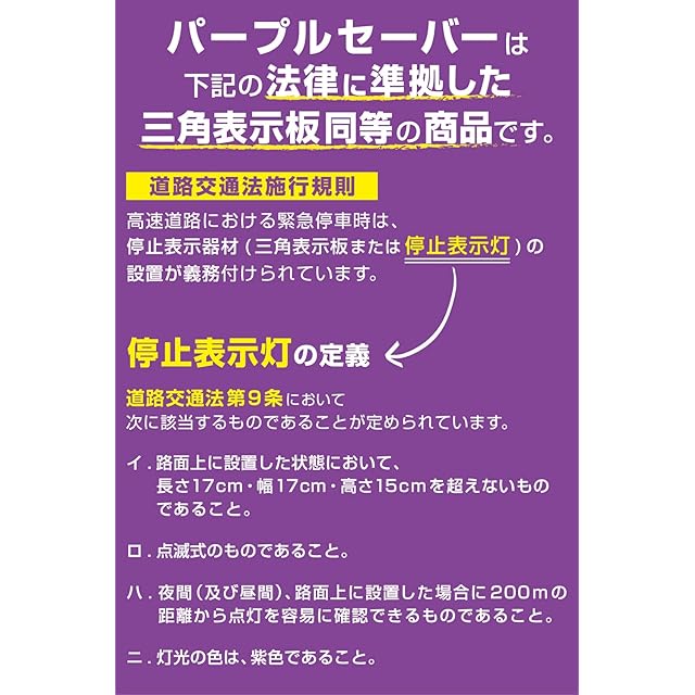 商品名:エーモン(amon) 第1世代 パープルセーバー 三角表示板の代わりに コンパクトで収納しやすい バイクのシート下など 停止表示灯 道路交通法施行規則適合品 土屋圭市氏推奨 6910