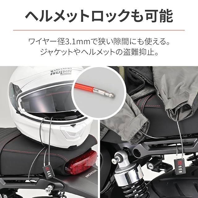 ワイヤー長1300mmでヘルメットやジャケットにも使えるワイヤーロック