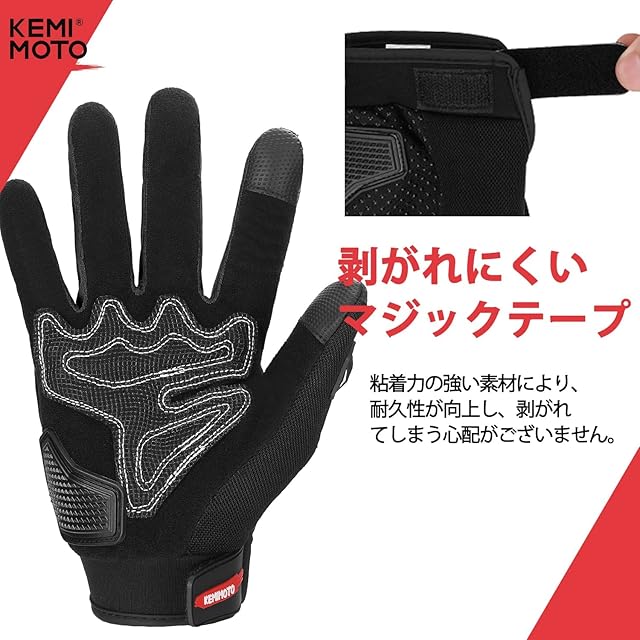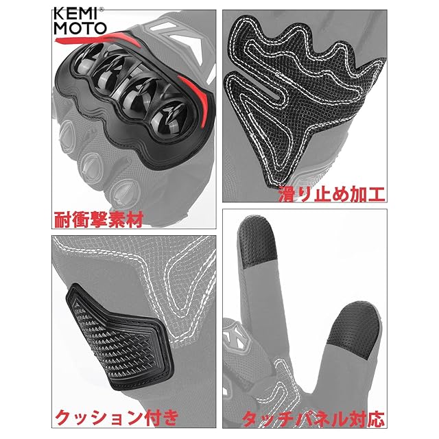 商品名:KEMIMOTO バイク グローブ 夏 メッシュ 通気 バイク用グローブ 軽量 スマホ対応 夏用グローブ オートバイ手袋 滑り止め 耐衝撃 プロテクト 春夏秋 ブラック M 402