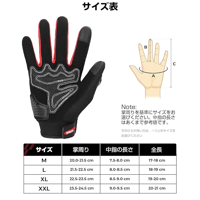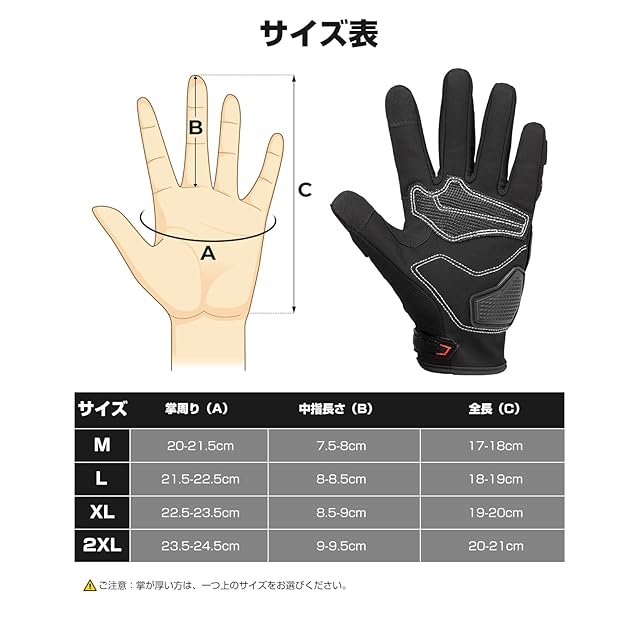 【スマホ反応はバッチリ】人差し指、親指の指先にタッチパネル対応の特殊な素材を採用され、グローブを着用したままスマホやタブレットなどの操作ができます。ツーリングの時、グローブをして、ナビや撮影に高い利便性があり、わざわざ脱着する必要はございません。