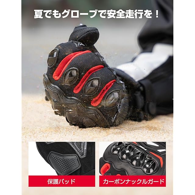 商品名:KEMIMOTO バイク グローブ 夏 メッシュ 通気 バイク用グローブ 軽量 スマホ対応 夏用グローブ オートバイ手袋 滑り止め 耐衝撃 プロテクト 春夏秋 レッド L 402