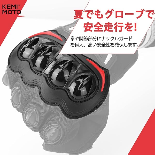 KEMIMOTO バイク グローブ 夏 メッシュ 通気 バイク用グローブ 軽量 スマホ対応 夏用グローブ オートバイ手袋 滑り止め 耐衝撃 プロテクト 春夏秋 レッド L 402