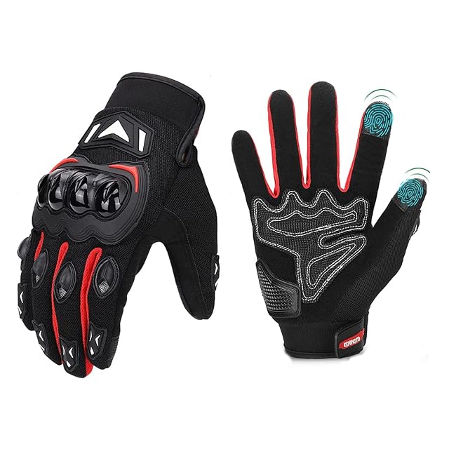 KEMIMOTO バイク グローブ 夏 メッシュ 通気 バイク用グローブ 軽量 スマホ対応 夏用グローブ オートバイ手袋 滑り止め 耐衝撃 プロテクト 春夏秋 レッド XXL 402