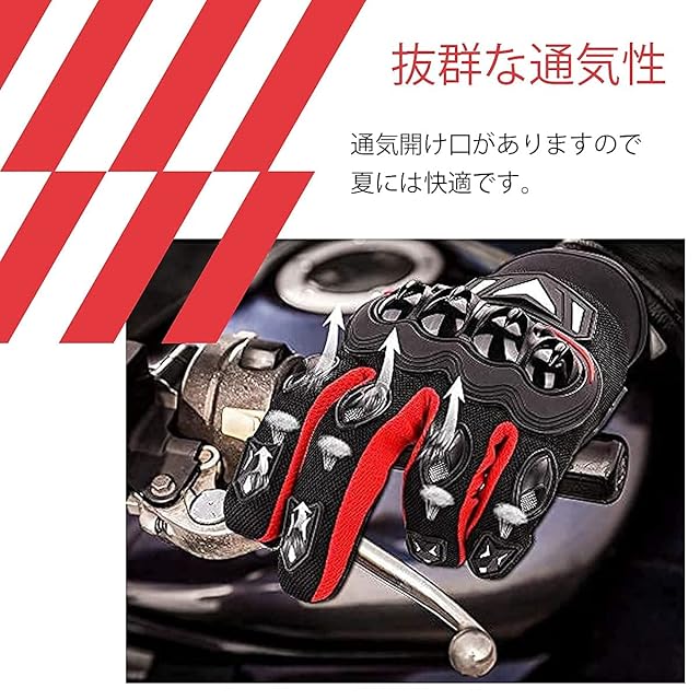 商品名:KEMIMOTO バイク グローブ 夏 メッシュ 通気 バイク用グローブ 軽量 スマホ対応 夏用グローブ オートバイ手袋 滑り止め 耐衝撃 プロテクト 春夏秋 レッド XXL 402