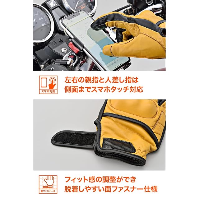 商品名:デイトナ(Daytona) バイク グローブ 革(牛革) 春夏秋冬 ハードプロテクター スマホ対応 カウレザー プロテクターグローブ HBG-110 イエロー XLサイズ 17762