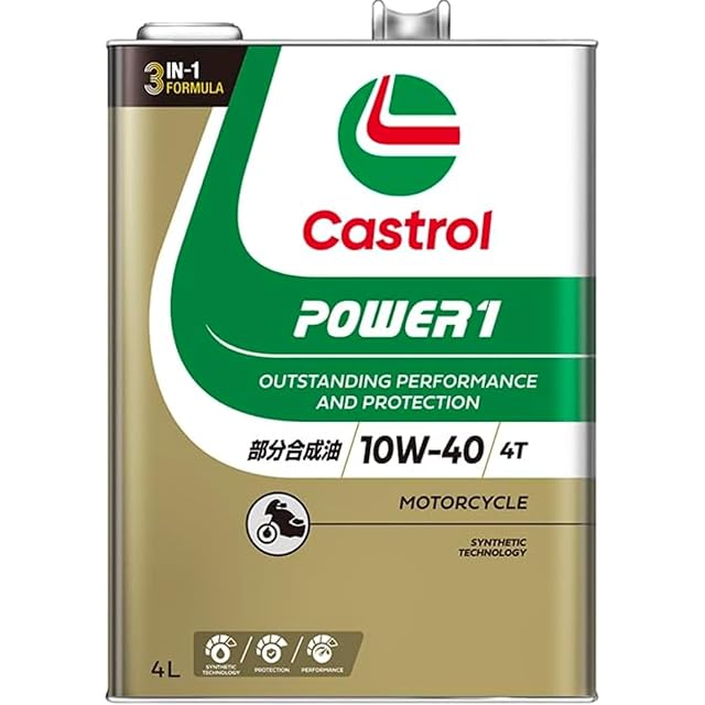 商品名:Castrol(カストロール) エンジンオイル POWER1 4T 10W-40 MA2 4L 二輪車4サイクルエンジン用 部分合成油