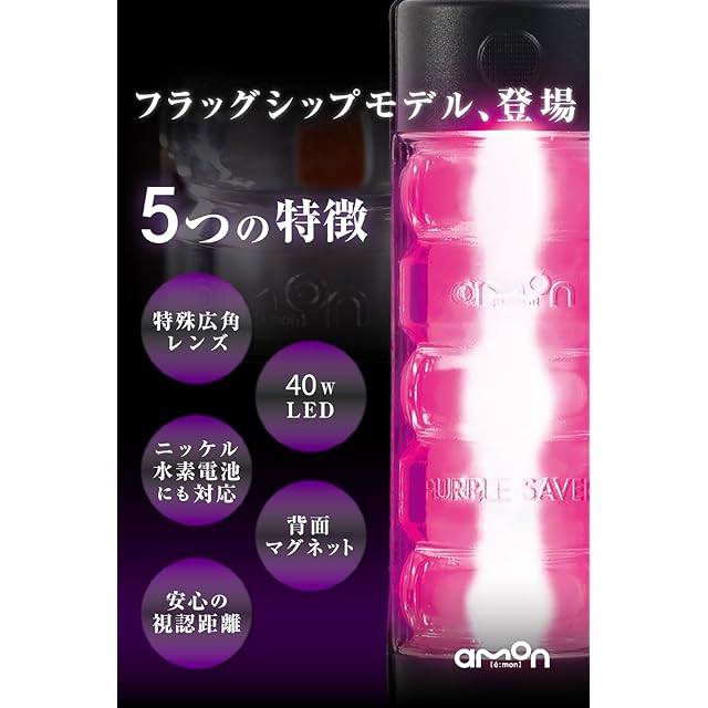 商品名:エーモン(amon) 土屋圭市氏推奨 パープルセーバーPro フラッグシップモデル より明るく広く遠くまで 充電池使用可 高速道路での緊急停車時 三角表示板の代わりに 道路交通法施行規則適合品 PURPLE SAVER PRO 4873