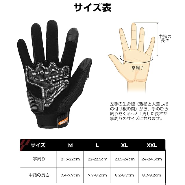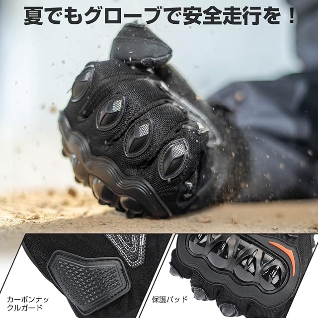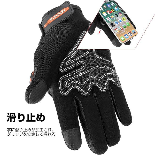 商品名:KEMIMOTO バイク グローブ 夏 メッシュ 通気 バイク用グローブ 軽量 スマホ対応 夏用グローブ オートバイ手袋 滑り止め 耐衝撃 プロテクト 春夏秋 オレンジ M 402