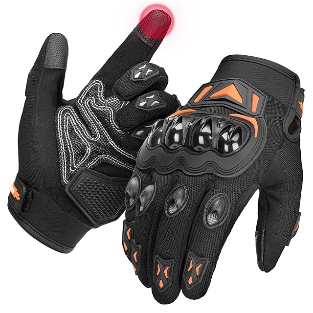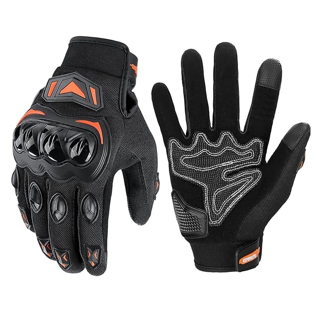 KEMIMOTO バイク グローブ 夏 メッシュ 通気 バイク用グローブ 軽量 スマホ対応 夏用グローブ オートバイ手袋 滑り止め 耐衝撃 プロテクト 春夏秋 オレンジ M 402