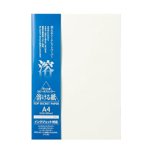 商品名:コピー用紙 トップシークレットペーパー A4 30枚 和紙 溶ける紙 208600002