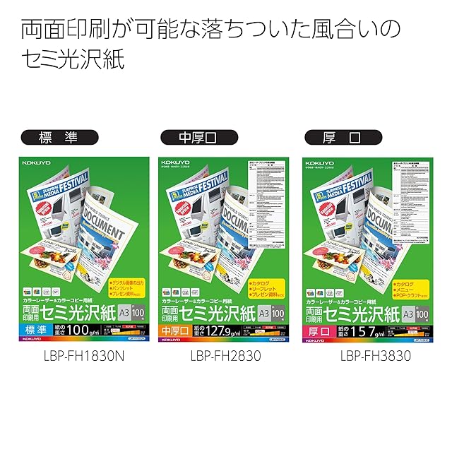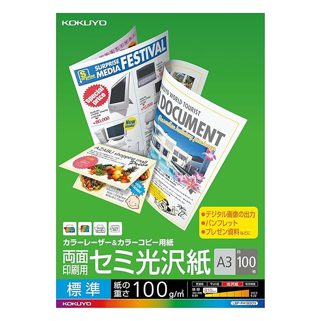 商品名:コクヨ(KOKUYO) カラーレーザー カラーコピー 両面印刷 セミ光沢 A3 100枚 LBP-FH1830