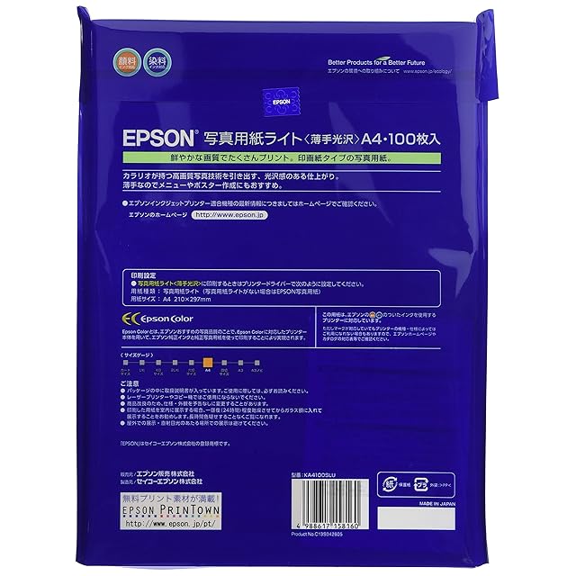 商品名:エプソン コピー用紙 写真用紙ライト 薄手光沢 100枚 A4 KA4100SLU