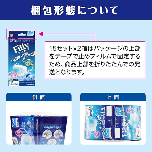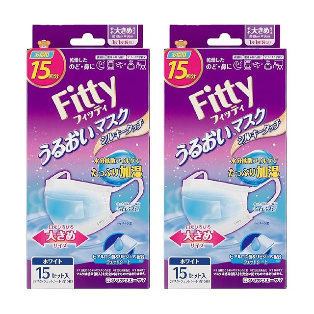 商品名:[フィッティ] Fitty うるおいマスク シルキータッチ (ホワイト/不織布/プリーツ) < 15セット×2箱 > 加湿マスク 乾燥 (やや大きめサイズ)