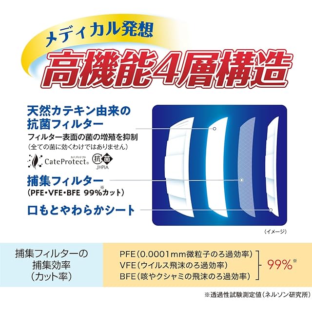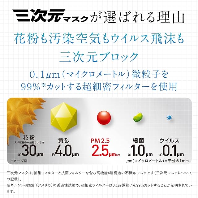 ウィルス飛沫、細菌飛沫、花粉、PM2.5をカットする純日本製不織布マスク