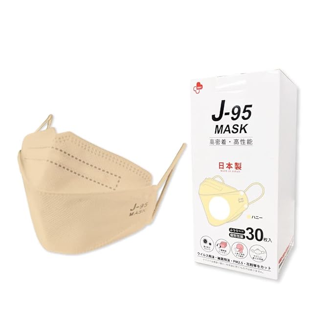 【日本製 JIS規格】J-95MASK【マスク クラス適合】正規品 MAID IN JAPAN【30枚個別包装】 日本製 カジュアル スーツに似合う4層 3D立体フィットマスク 不織布マスク 無地色マスク JN95MASKの新型【ハニー】