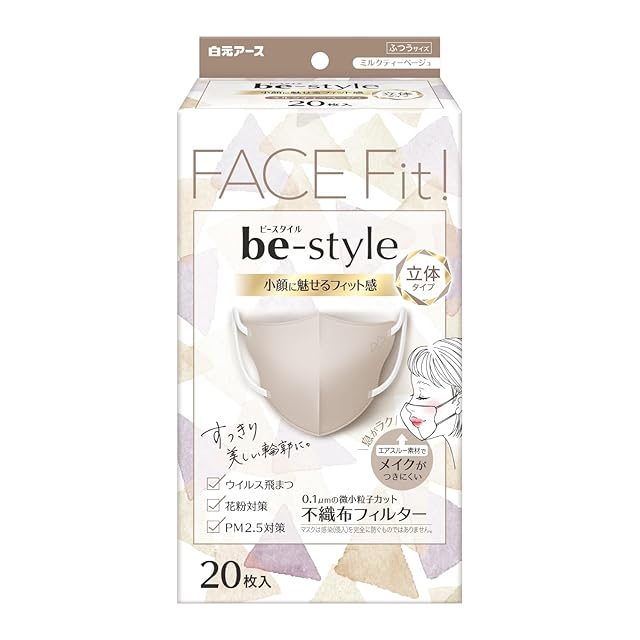 ビースタイル 白元アース マスク 立体タイプ ふつうサイズ ミルクティーベージュ 20枚入 JIS規格適合 耳が痛くならない幅広耳ひも メイクがつきにくい 不織布