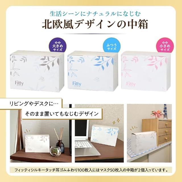 商品名:[フィッティ] Fitty シルキータッチ耳ゴムふわり 100枚 (ふつうサイズ/不織布 / 50枚×2箱) 個包装 不織布マスク (耳が痛くなりにくい/肌ざわりがいい/普通) 使い捨て