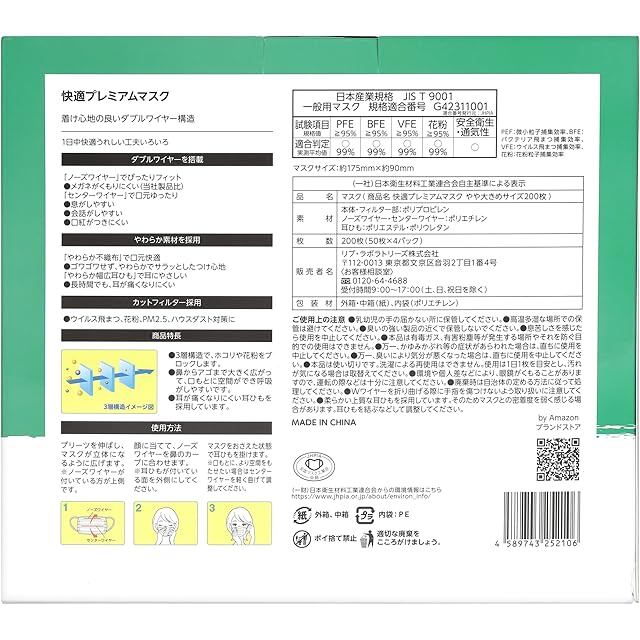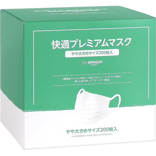 商品名:by Amazon マスク やや大きめサイズ (約175mm×約90mm) PM2.5対応 200枚(50枚×4パック) ホワイト 無地