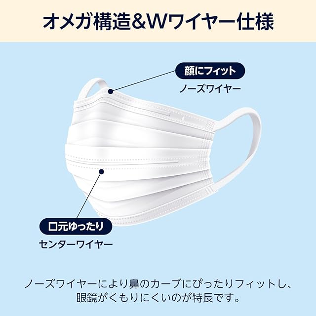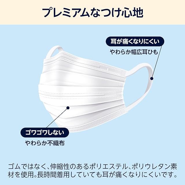 材質:本体・フィルター部(ポリプロピレン)・ノーズワイヤー・センターワイヤー(ポリエチレン)・耳ひも(ポリエステル・ポリウレタン)