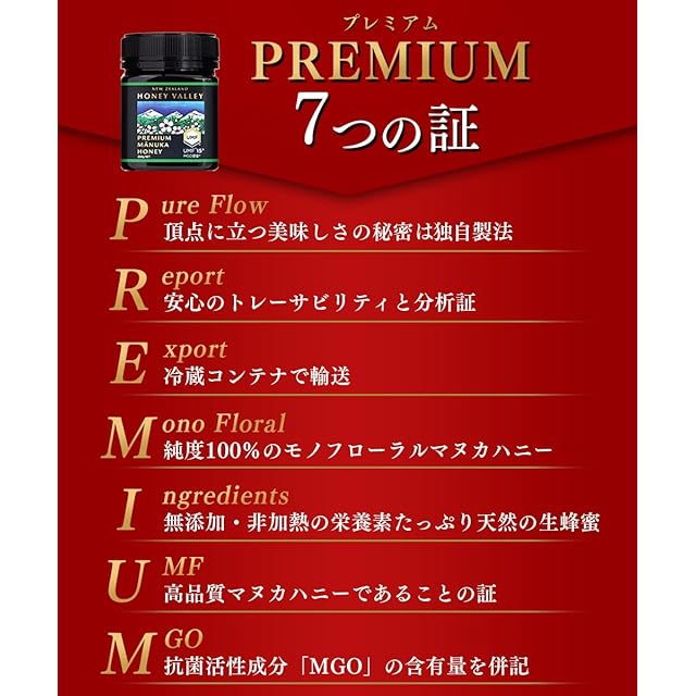 商品名:HONEY VALLEY プレミアム マヌカハニー UMF15+ MGO512+ 250g 正規品 100% Pure New Zealand Honey ハニーバレー