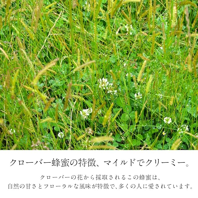 その黄金色の蜜はマイルドで香り高く、上品な味わいです。幸福のシンボルとされるクローバーのはちみつをお楽しみください。