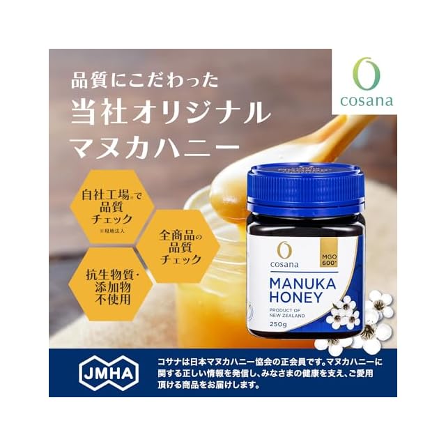 商品名:Cosana コサナ マヌカハニー MGO600+ 250g 正規品 ニュージーランド産 非加熱 無添加 はちみつ 蜂蜜 BRCGS AA+認証工場製造