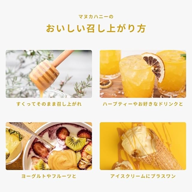 栄養補給の食品として1日2~3回に分けて摂取してください。トーストにぬったり、ハーブティー等の甘味料として使用できます。