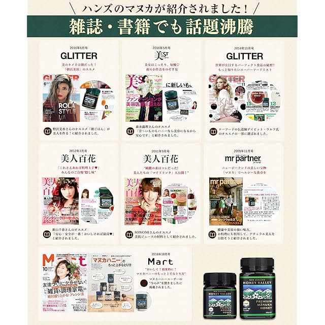 【Ingredient:無添加・非加熱・抗生物質不使用】ハニーバレー プレミアム マヌカハニーは、非加熱処理により、自然の酵素やミネラル、ビタミンを壊すことなく特殊製法でつくられています。UMF分析証明書のHMF(ヒドロキシメチルフルフラール)の数値(40mg/kg以下)によって非加熱であることが証明されている生はちみつです。