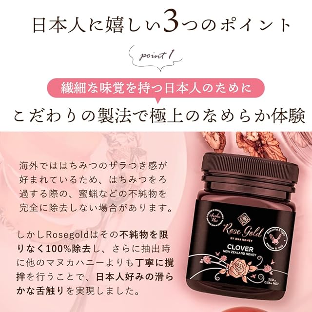 世界一味覚の繊細な日本人に向けて、特殊な抽出を行ったマヌカハニー