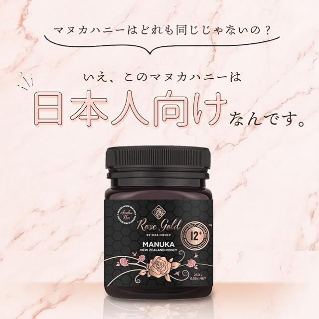 【RoseGold マヌカハニーの商品詳細】非加熱 ●ニュージーランド固有のマヌカの花から採集された、濃厚な色合いとクリーミーな甘さが特徴のマヌカハニーです。 ●農薬、抗生物質を使用していない、100%ピュアハチミツです。 【召し上がり方】 ・適量をそのままお召し上がり頂いたり、お料理にお使いください。 【RoseGold マヌカハニー の原材料】 はちみつ(ニュージーランド産) ※2020年4月ラベル表記がリニューアルしました。 製品の内容については従来通り変更ありませんので安心してお召し上がりください。