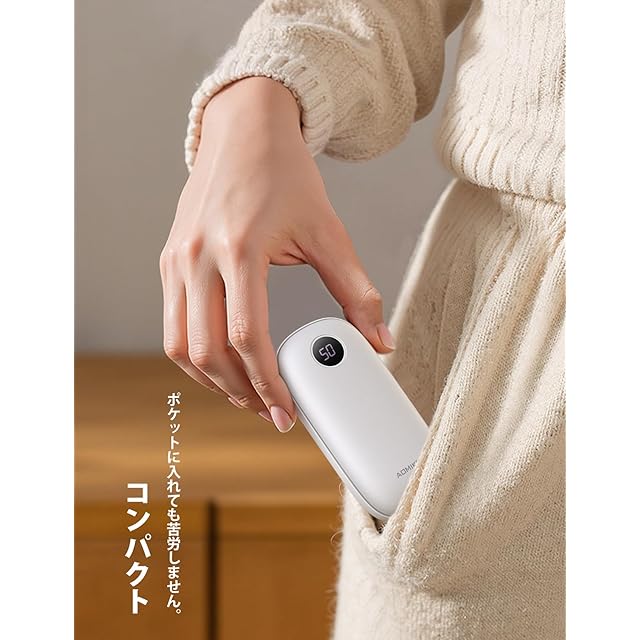 商品名:【両面発熱】 充電式カイロ LEDデジタル 温度表示 Aomiker : ストラップ付き 5V/2A usb-c 充電 3秒急速発熱 3階段 温度調節 電気 かいろ 4000mAh 電子 懐炉 繰り返し利用 充電式 ホッカイロ あんか 連続 発熱 操作簡単 アルミ 携帯 小型 軽量 コンパクト ポケットサイズ 持ち運び 通勤 通学 釣り アウトドア 寒さ対策 かわいい 防寒グッズ ホワイト