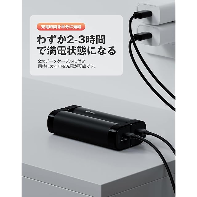 【1台2役のモバイルバッテリー機能】10,000mAh(5,000mAh x2)の大容量バッテリーを搭載しており、充電式カイロの使用時間は低温モード:約7~14時間、中温モード:約5~7時間、高温モード:約4~6時間です。(2つカイロの使用時間総合です。)モバイルバッテリーとしての使用回数は、iphoneXS 約3回、iphone11pro 約2.5回、iPhone13pro 約2回ほど充電可能です。実際の使用時間は、環境や使用状況などにより異なる場合があります。