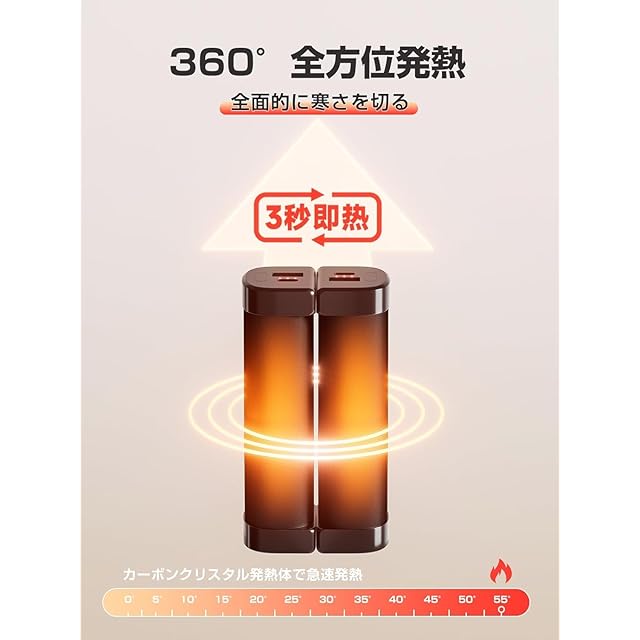 【1秒でポカポカ!360°全面発熱】充電するだけで、繰り返し使えるエコなカイロが新登場!寒さが厳しい日でも、スイッチを入れてたった1秒ですぐ温もりを実感。手先の冷えが気になる時も、サッと取り出して即効暖まろう。 360°全面発熱設計で、どこを持ってもまんべんなく温かく。握り方や置き場所を選ばず、じんわり持続的なあたたかさが続きます。 繰り返し充電可能なので、使い捨てカイロよりも経済的&地球に優しい。高い保温性能で、アウトドアや通勤・通学、オフィスでも大活躍!