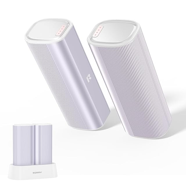 RORRY 2026 昇進版 充電式カイロ ハンドウォーマー 電子式 (2個セット・10000mAh大容量・充電と収納一体スタンド付)4段階温度調節(40-55℃) 繰り返し使える 最大10時間連続使用可 円筒形 アルミ合金製 360°全面発熱 3秒急速加熱 PSE認証 冬/通勤/通学/旅行/デスクワークなどに適用 ギフトパッケージ (パープル)