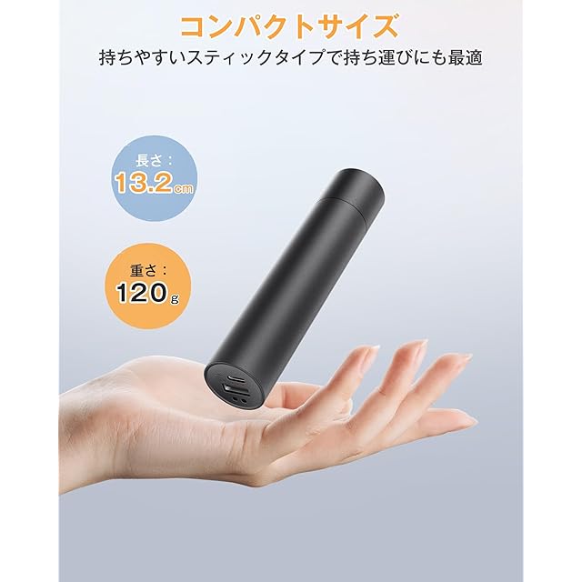【超軽量・持ち運びやすい】わずか110gと軽量、握りやすいスティック形状で、手の小さい方でも簡単に使用できます。軽量・小型でどこでも温かさを持ち運べるので、通勤、通学中や屋外でのスポーツ観戦など、あらゆるシーンで活躍します。
