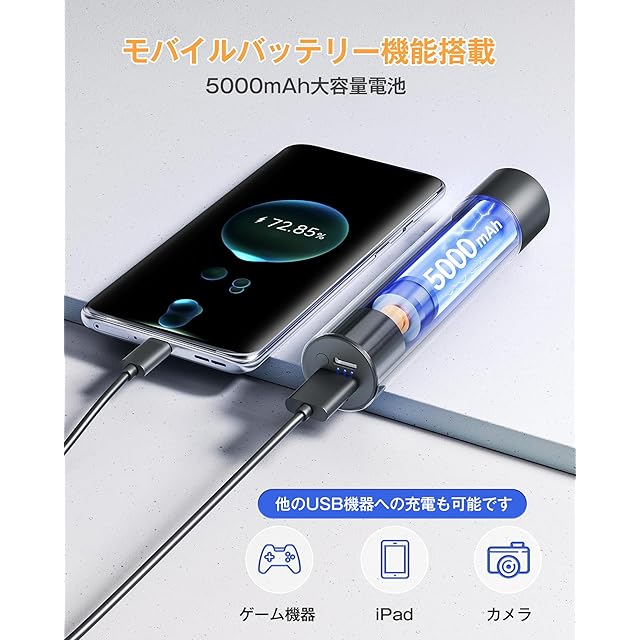 【モバイルバッテリーとして】5000mAh大容量バッテリーが搭載され、スマホの予備電源としても最適!外出時にカイロとモバイルバッテリーを両方持ち運ぶ必要がないため、荷物を少なくしたい人にもおすすめです。