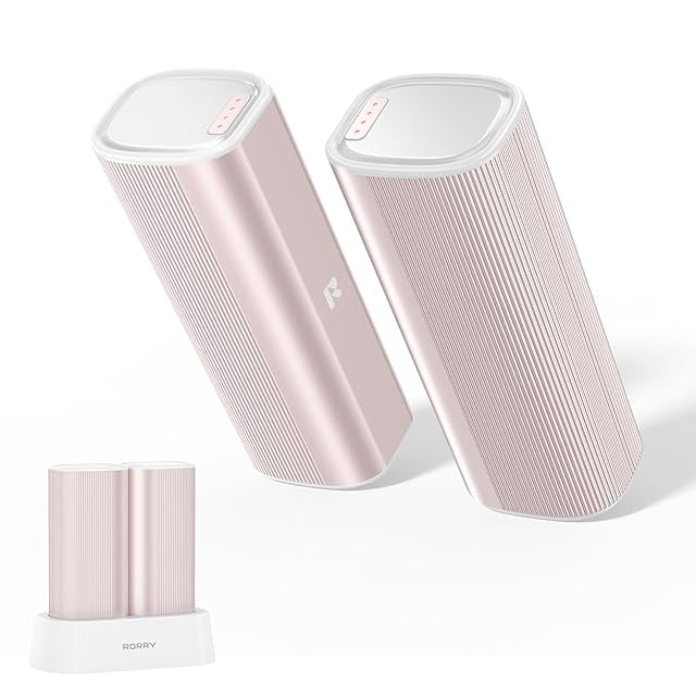 RORRY 2026 昇進版 充電式カイロ ハンドウォーマー 電子式 (2個セット・10000mAh大容量・充電と収納一体スタンド付)4段階温度調節(40-55℃) 繰り返し使える 最大10時間連続使用可 円筒形 アルミ合金製 360°全面発熱 3秒急速加熱 PSE認証 冬/通勤/通学/旅行/デスクワークなどに適用 ギフトパッケージ (ピンク)