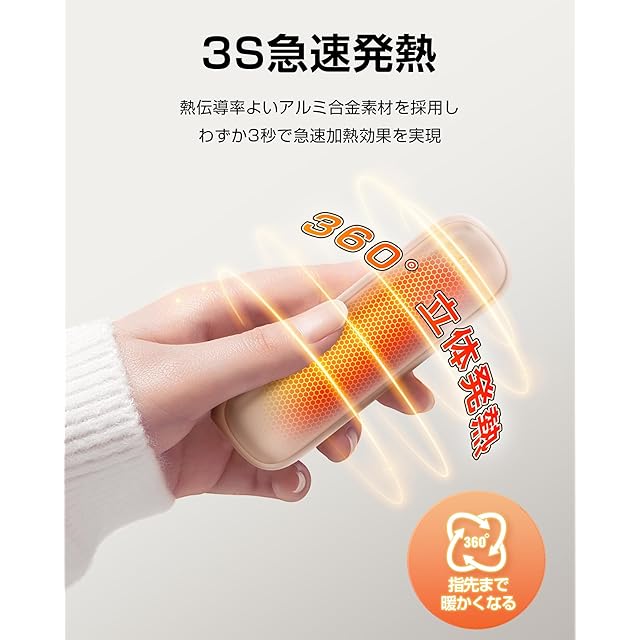 【3秒急速発熱で即座に暖かさを実感】YUSIDO充電式カイロは、優れた熱伝導性を持つアルミニウム合金を採用し、たった3秒で急速に発熱します。手元に持つだけで、瞬時に指先から手のひら全体が暖かさに包まれるため、寒い日でも待つことなく快適に過ごせます。また、360度全方位から均等に暖かさを提供し、手全体がバランス良く温まるため、冬の厳しい寒さの中でも確実に体を守ってくれます。寒冷地での通勤やアウトドア、スポーツ観戦など、寒さが気になるあらゆるシーンで役立つ優れたアイテムです。